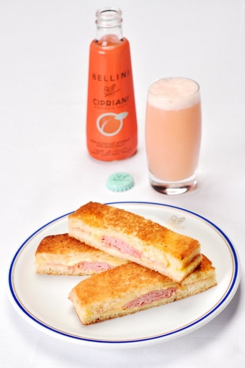 Three Toasted Sandwiches with Veal Ham and melted Cheese